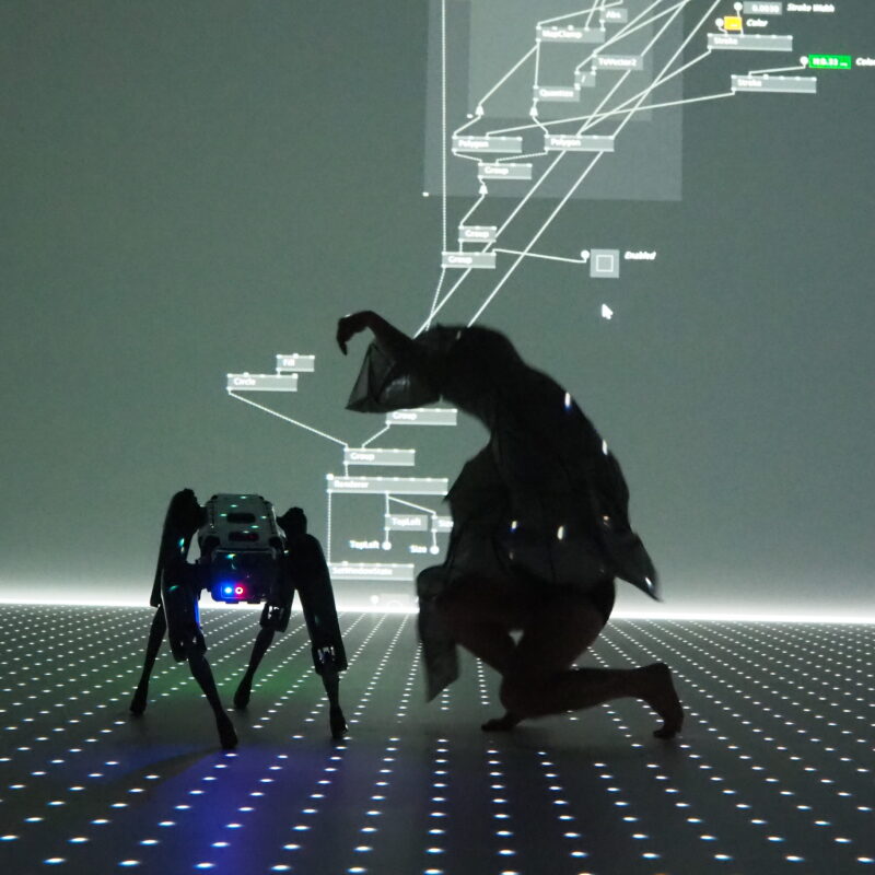 Later that year, *Silke Grabinger* was proposed to join a collaborative project with *Creative Robotics*. The project aimed to combine the fields of performativity and robotics, and Grabinger was highly interested in the idea. Thus, the idea of the “SplitSubject” was initiated to explore ways of interactive performance in the context of human-robot interaction.