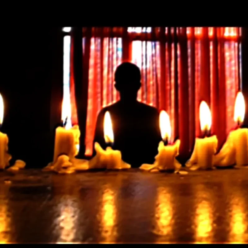 below a set of candles from a far distance in the form of a video installation titled: “Worn-out Mirrors”.
