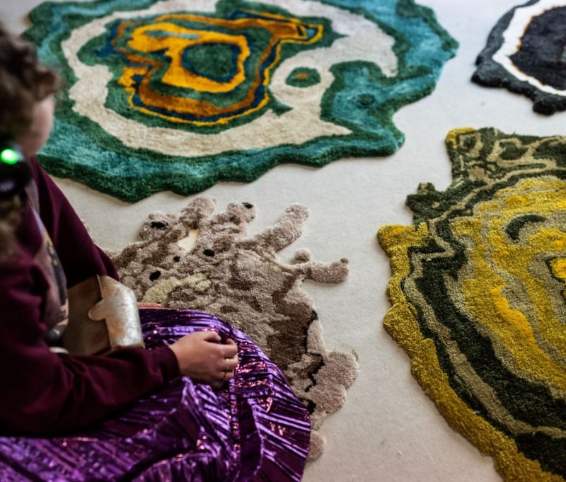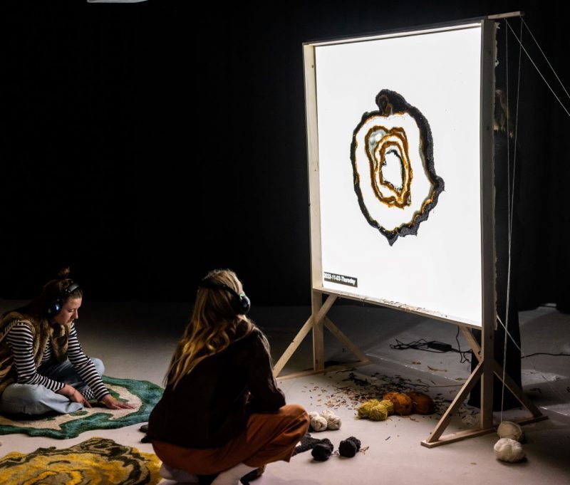 What kind of new ‘we’ do we experience when it is not about us. Taking the focus from what is opposed to one another to the relation with the others. ZOE creates around itself a space of sensory data visualisations. Opening up a way to relate to the unknown mushroom communication in ZOE. Visually, auditory and tactile translations of the data flowing out of ZOE’s temporary co-existence are there for the visitor to explore. This is done through data sonification, an livestream, realtime data visualisations and data carpets. The data carpets are created each day from the data of the reishi signals in relation to their environment.